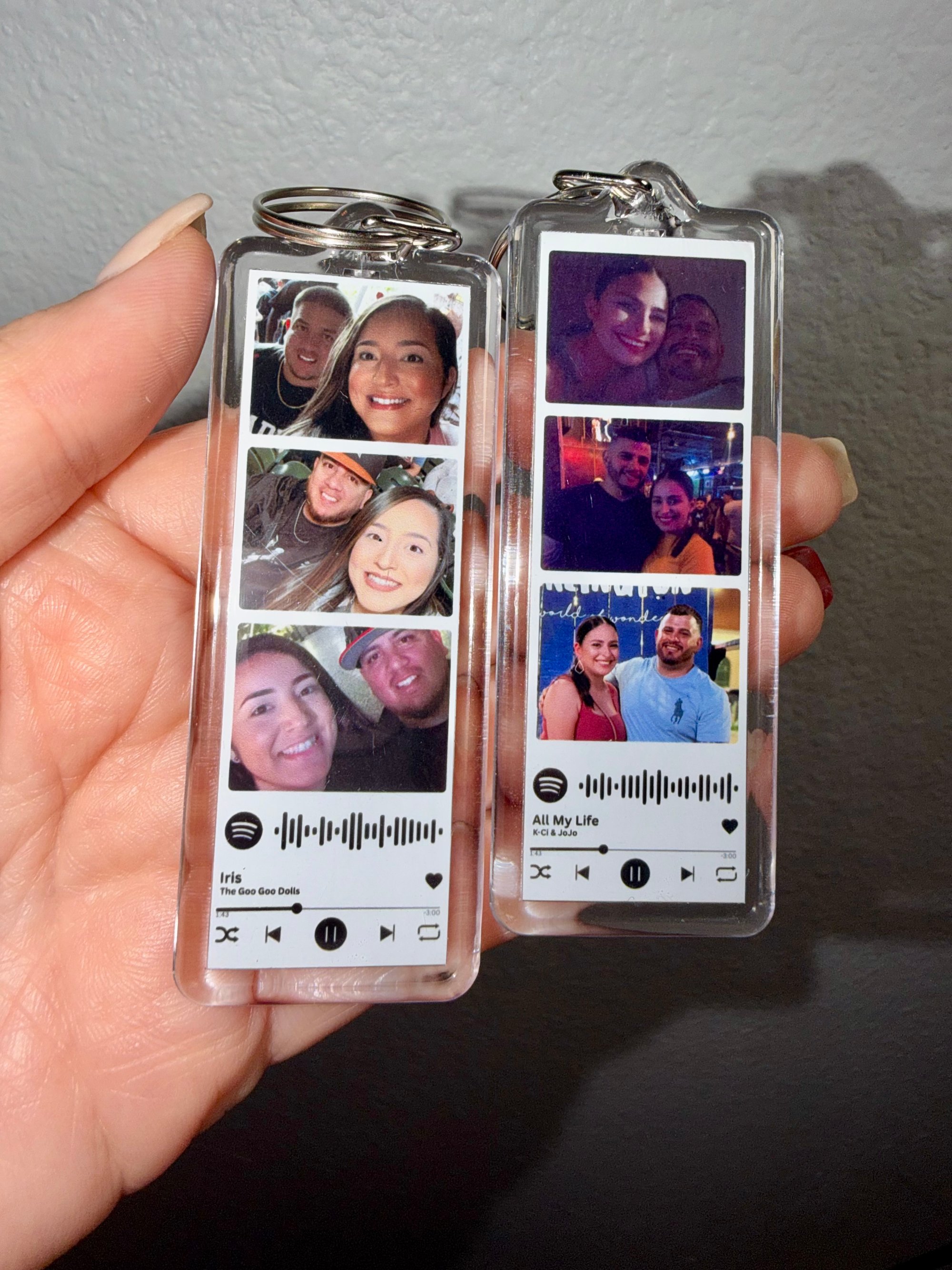 Your images are printed and sealed inside a clear, durable acrylic casing and attached to a sturdy keyring for everyday use.