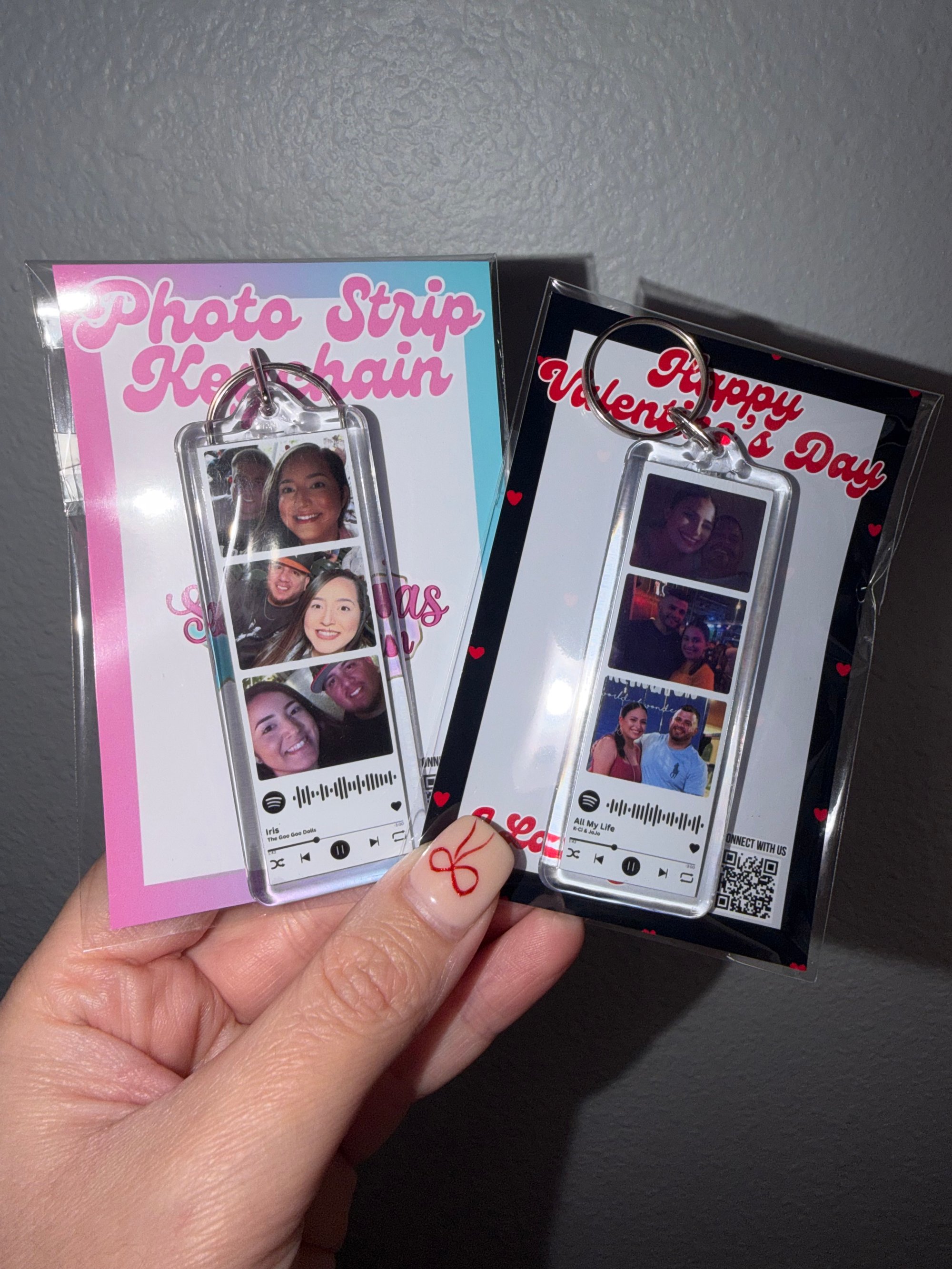 Each keychain is handmade and custom-made with your photos, designed to resemble a classic photo booth strip in a mini size (approximately 3 x 1.5 inches).